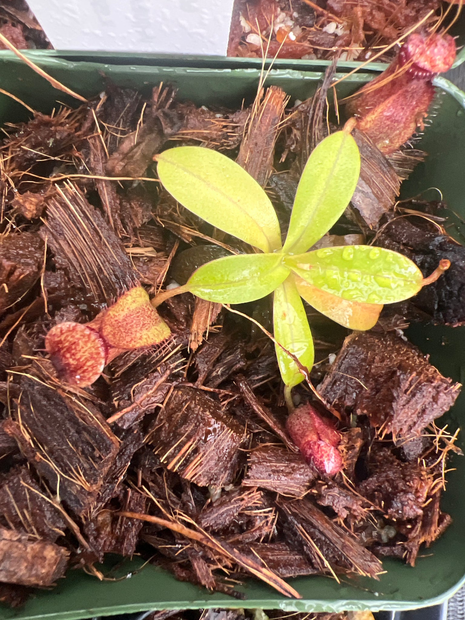 This is a dream hybrid! Two species with possibly the most “toothy” peristomes in the entire genus combine and complement one another beautifully. Even juvenile plants are showing the most amazing pitchers. The first photo show what pitchers on larger specimens look like. Each plant is approx 2” in diameter.